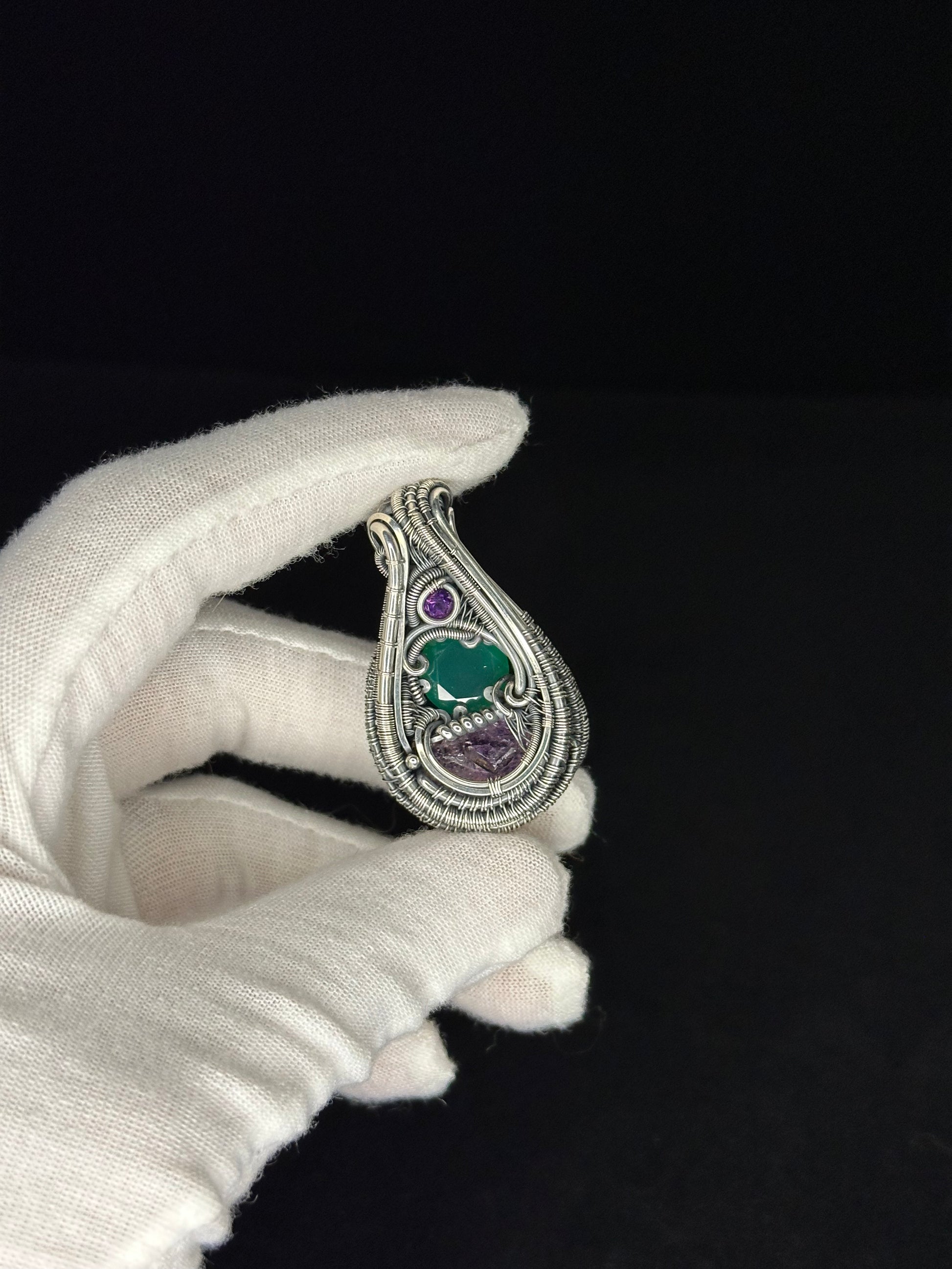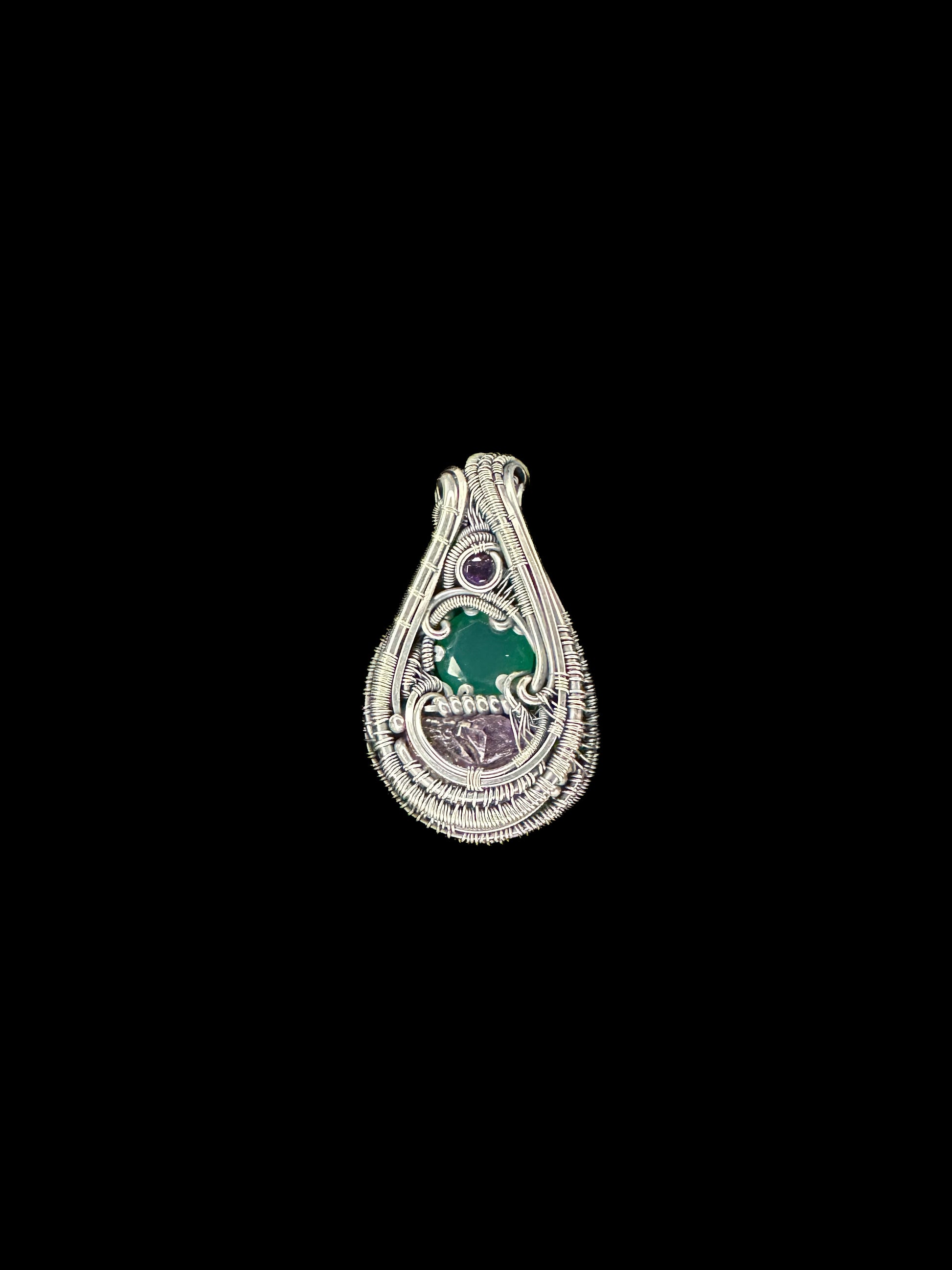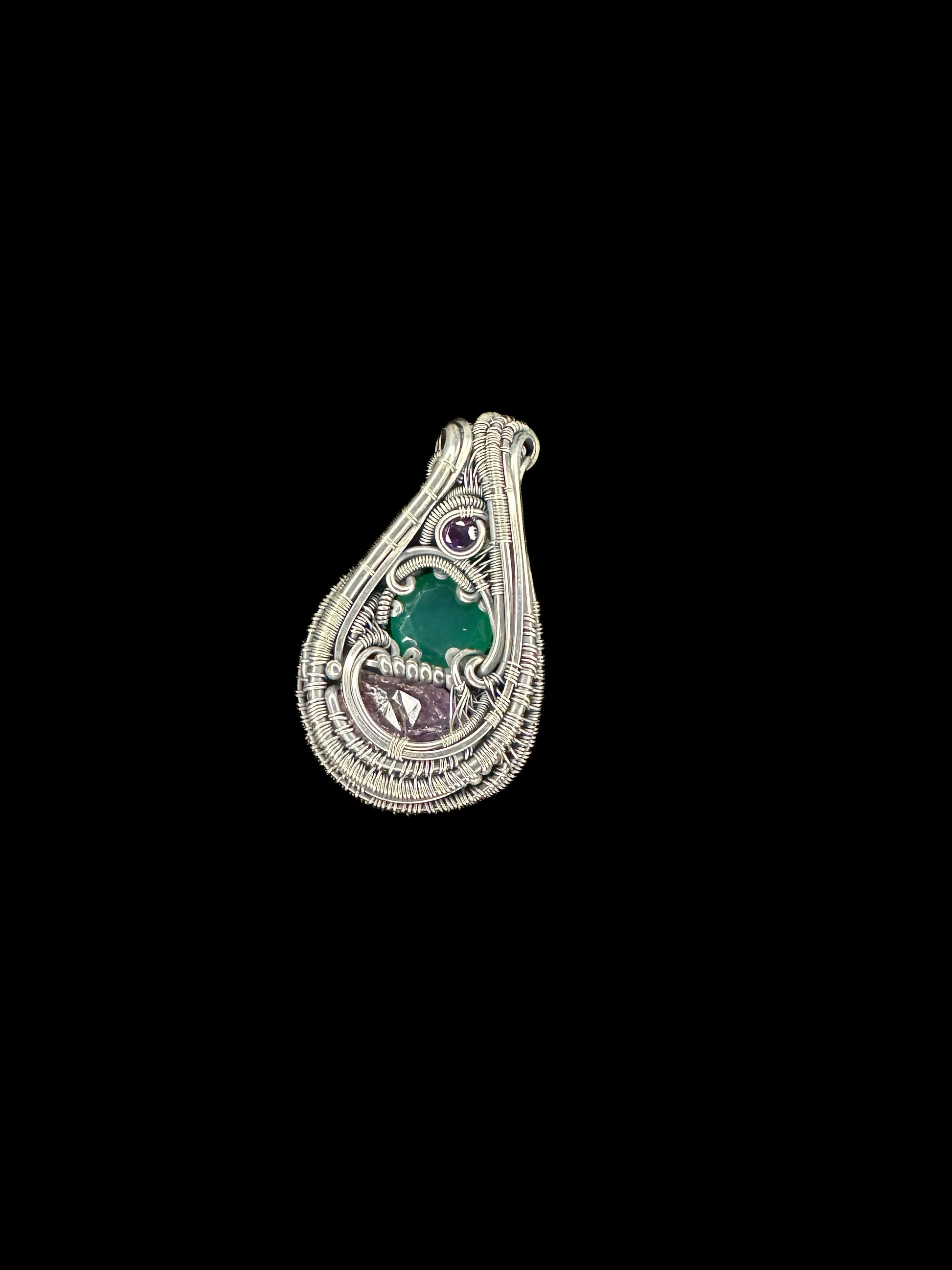Oxidized Silver Pendant With Chrysoprase & Amethyst