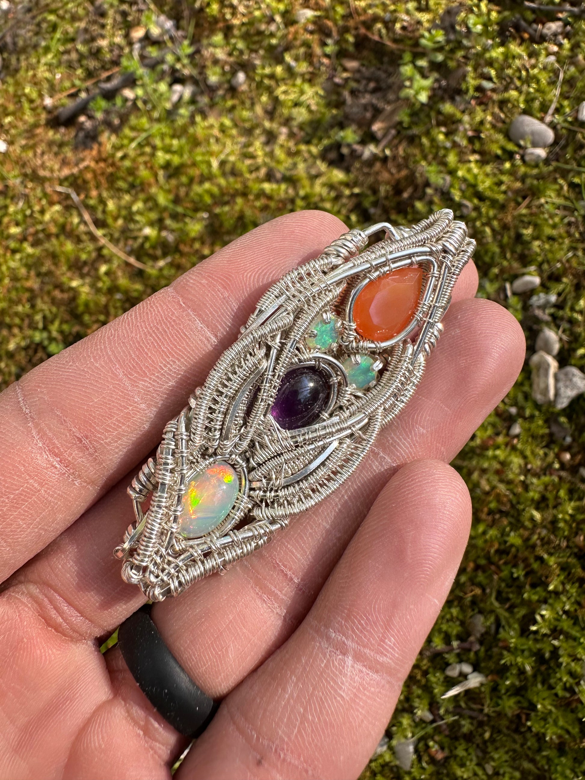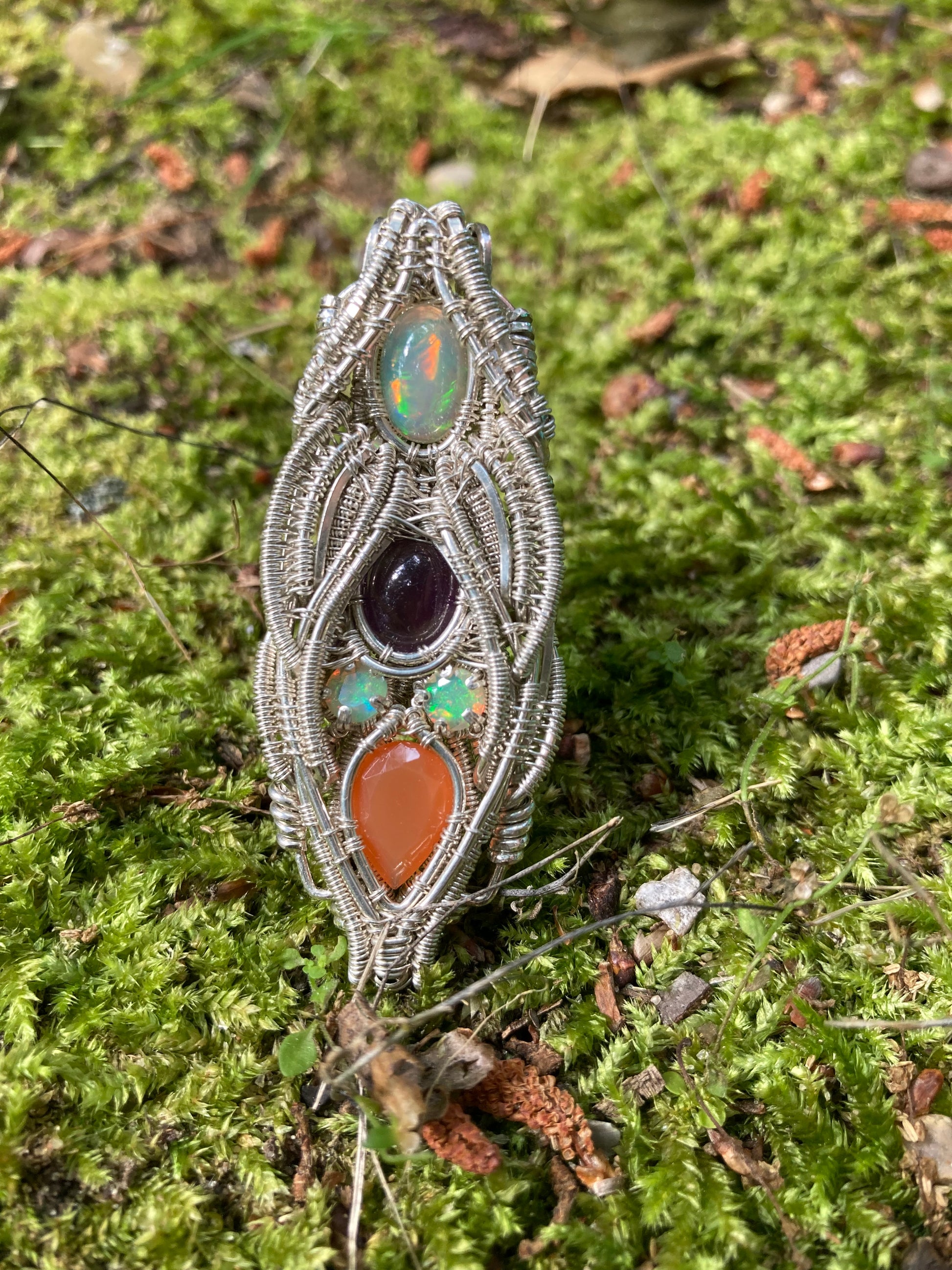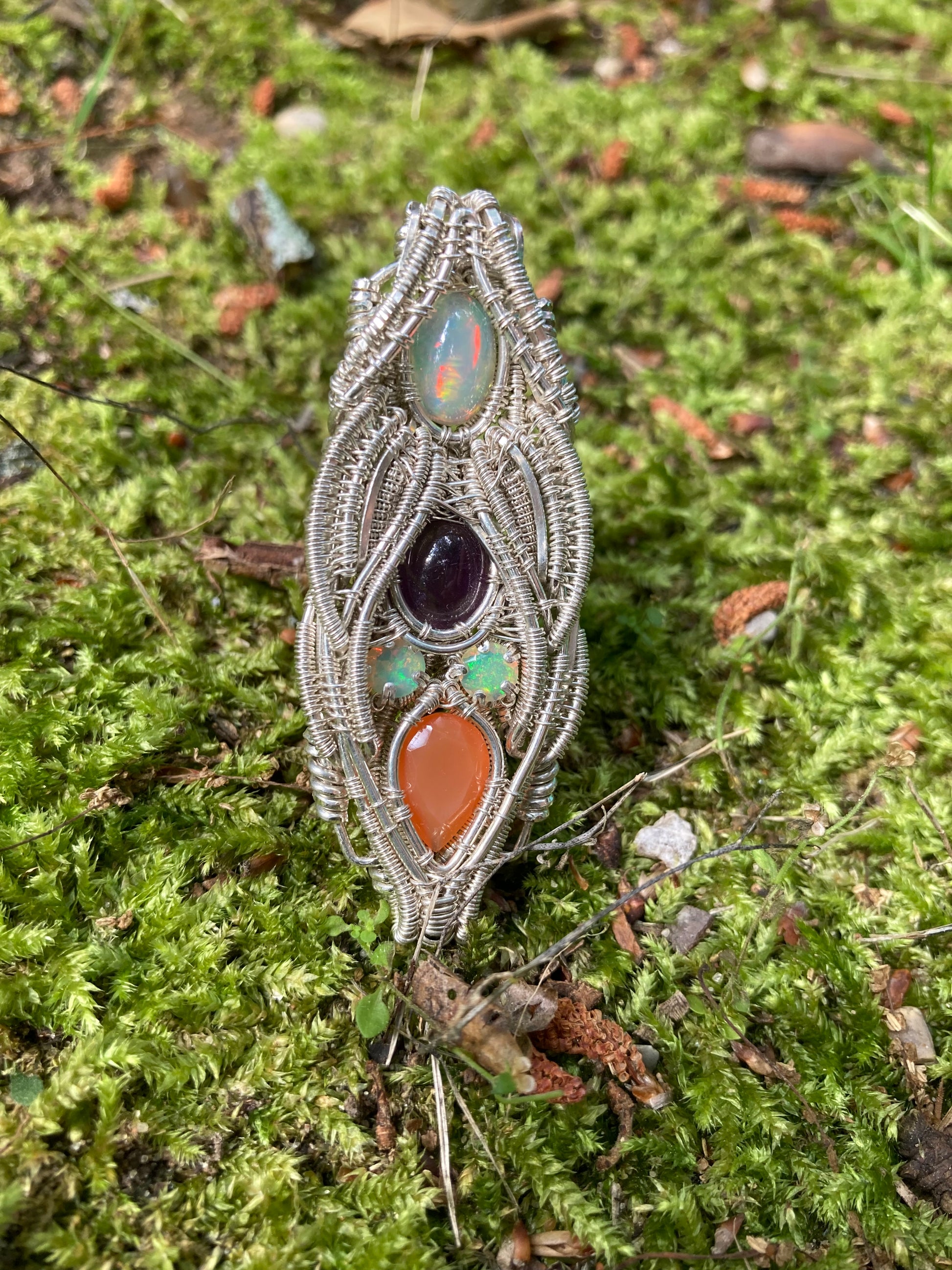 Silver Pendant W/ Welo Opal, Amethyst & Carnelian