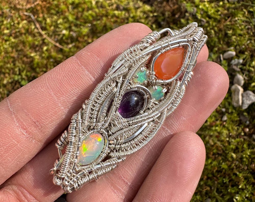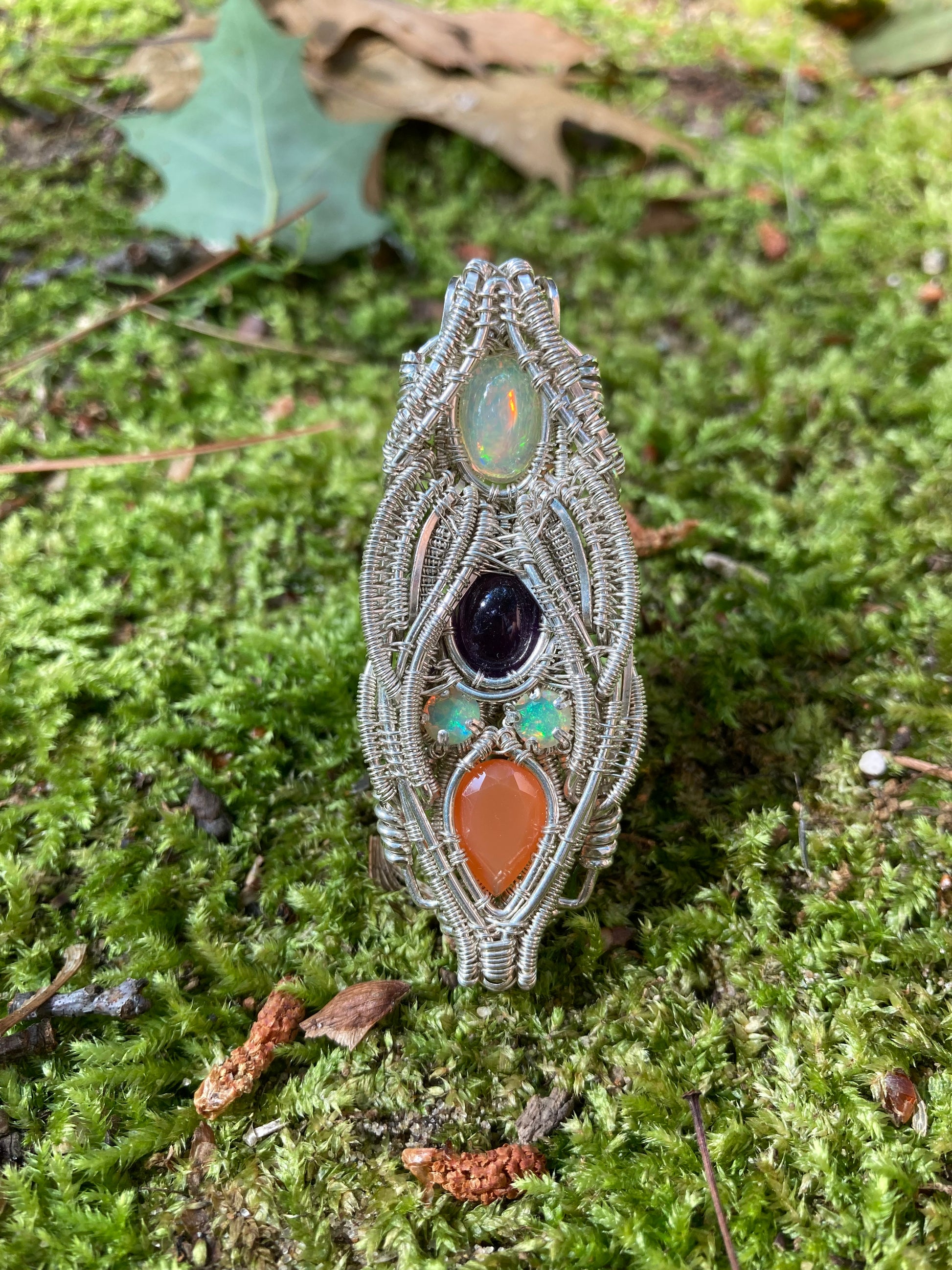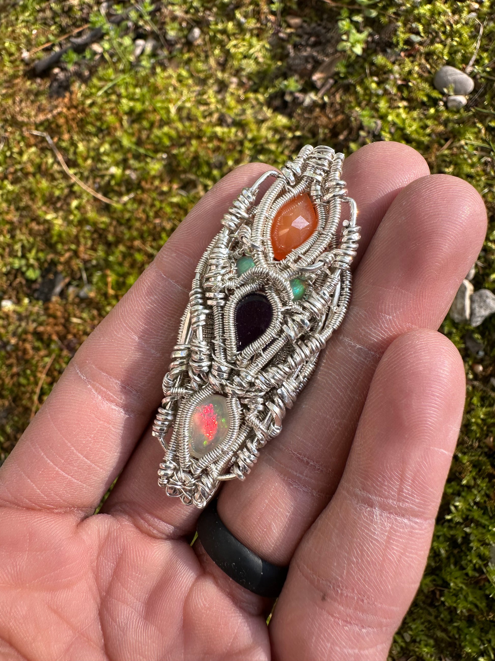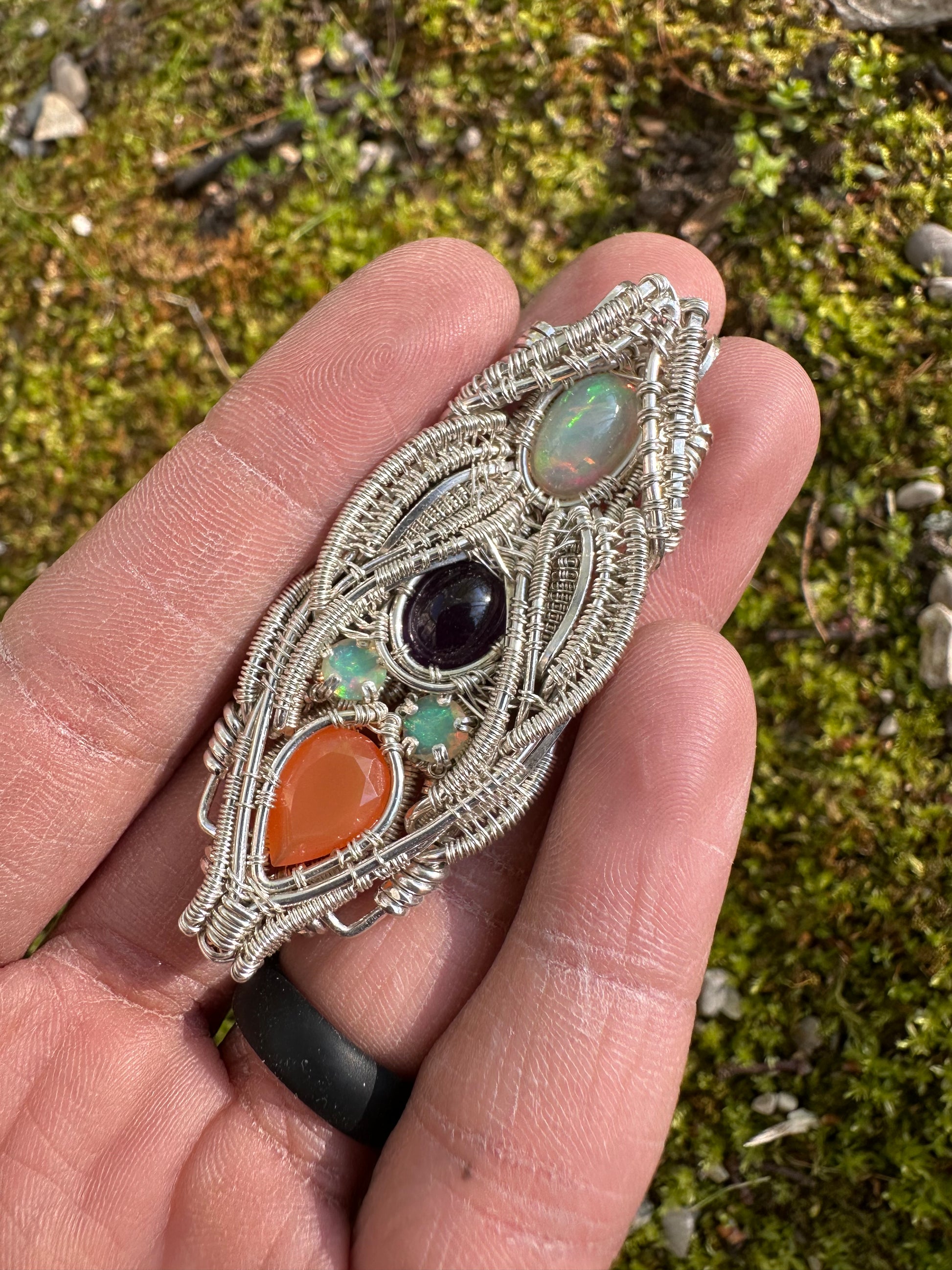 Silver Pendant W/ Welo Opal, Amethyst & Carnelian